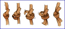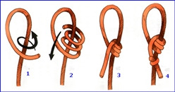 야 안전한 매듭이다. 매듭 중 가장 잘 풀어지는 단점이 있으며 장점은 고리의 조절이 쉽고 매듭후 조여들지 않으므로 벨트