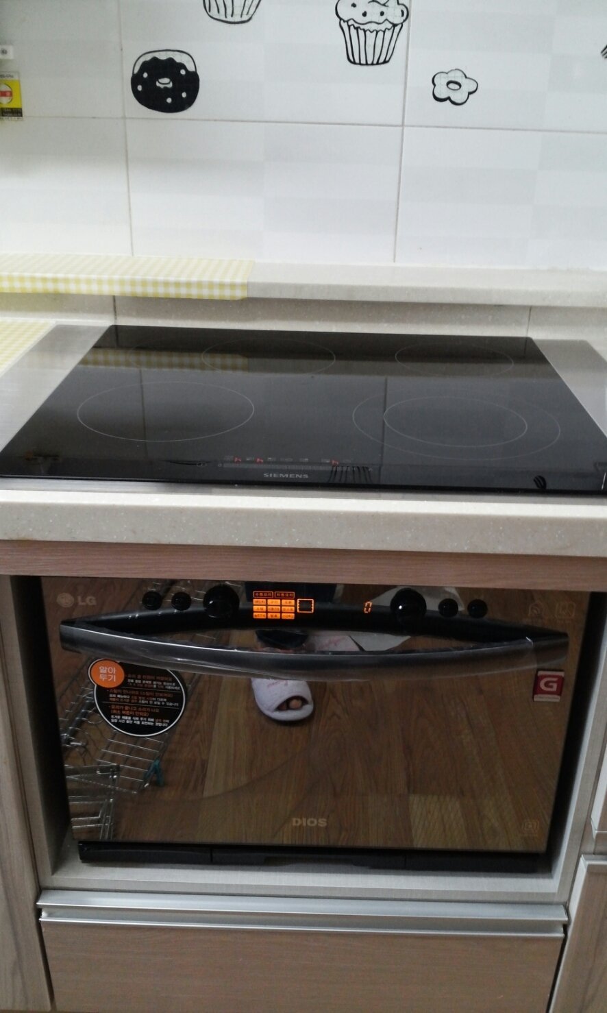 광파오븐 함께 넣으니 부엌이 한결 깔끔해졌구요.