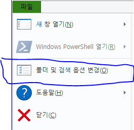 2) 상단 Ribbon - 파일 - 폴더 및 검색 옵션