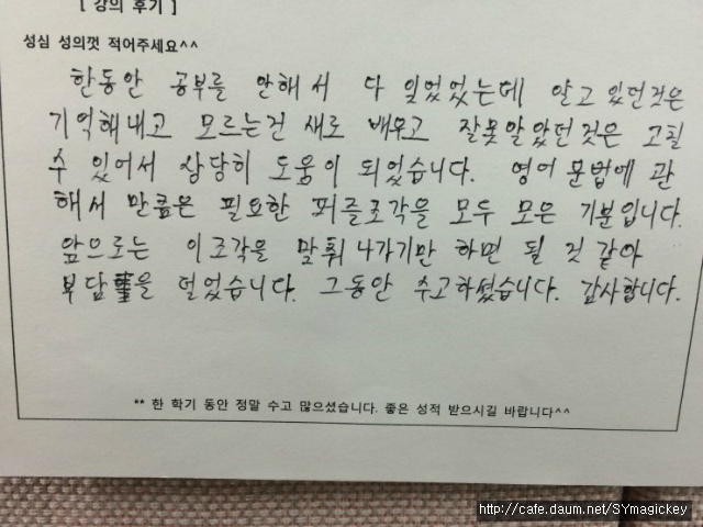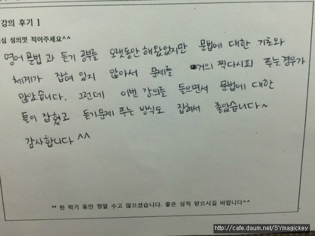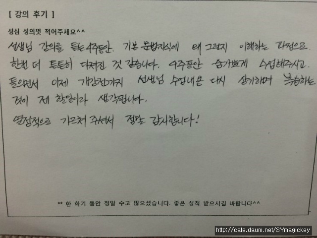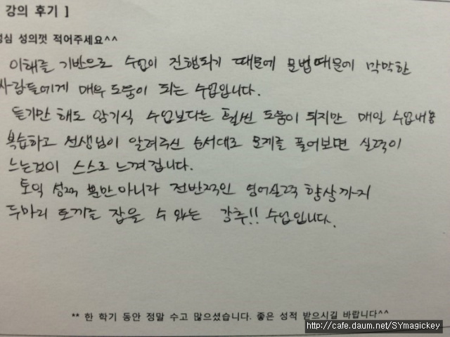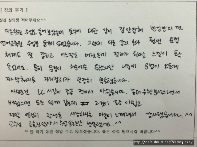 전북대 언어교육부 신신토익 선영 쌤 강의 문법관련 후기 작성자박선영|작성시간17.07.04|조회수200 목록 댓글 0 글자크기 작게가 글자크기 크게가 전북대학교 언어교육부 신신토익 선영 쌤의 新토익 수강 후기입니다~ 다음검색 현재 게시글 추가 기능 열기 북마크 공유하기 신고 센터로 신고 댓글 댓글 0 댓글쓰기 답글쓰기 댓글 리스트