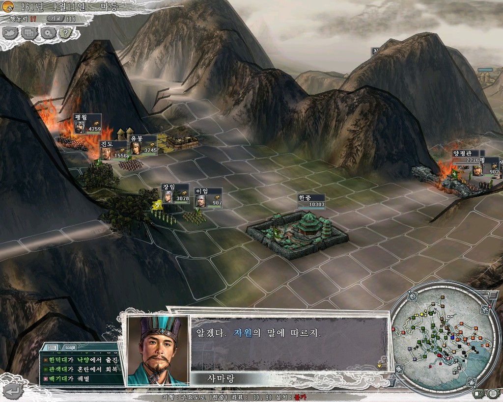 조금은 이상하게 생각했지만 종회군이 한중을 향해 병력을 먼저 뿌린 결과 양평관에는 아무도 안온것이 확인 됐군요!!
