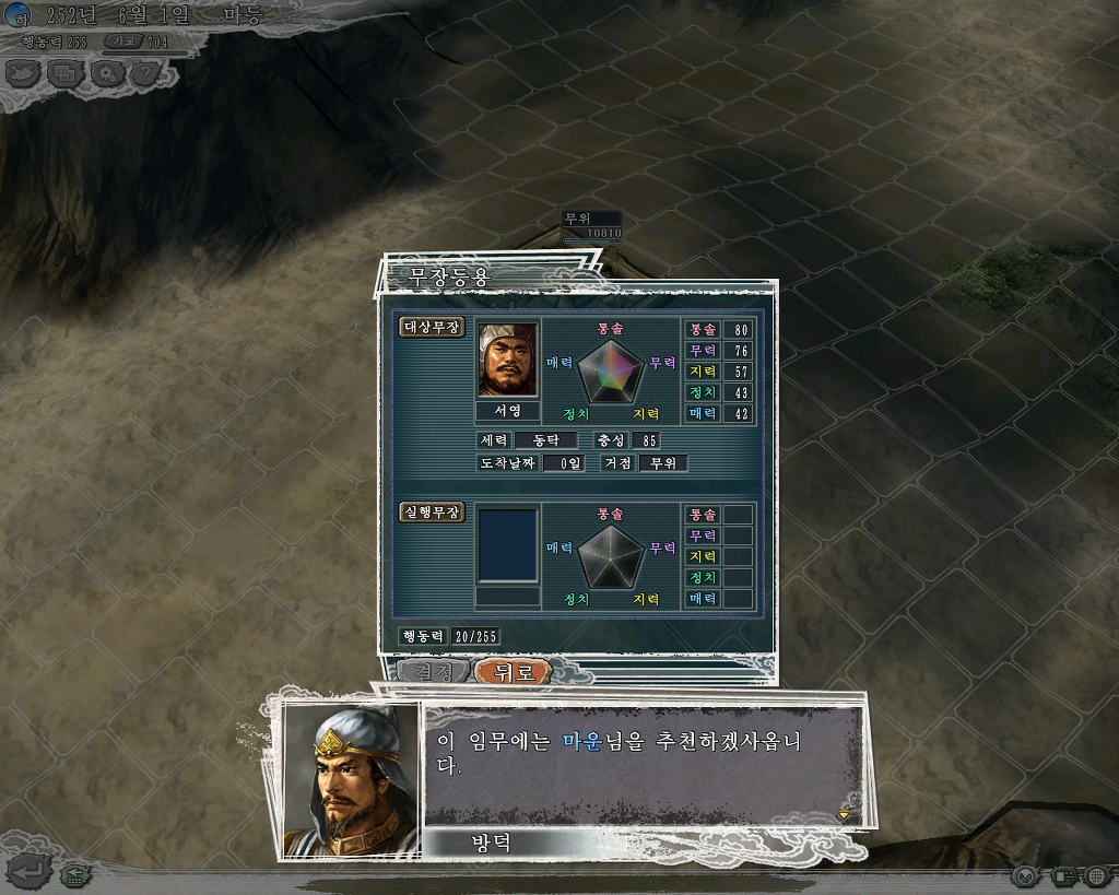포로로 잡은 서영을 등용 하기위해 방덕의 추천으로 마운이 등용을 하러 갑니다.