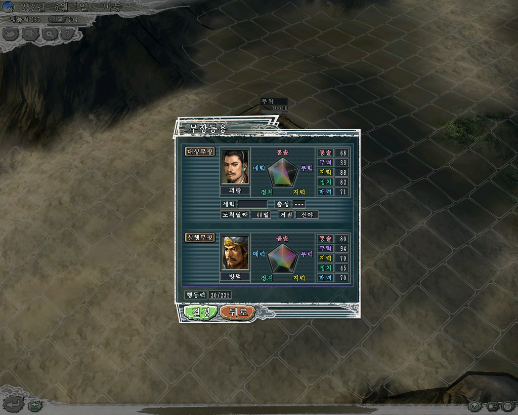 그리고 등용을 하러 떠난 방덕은 괴량의 등용에 실패 하셨습니다.