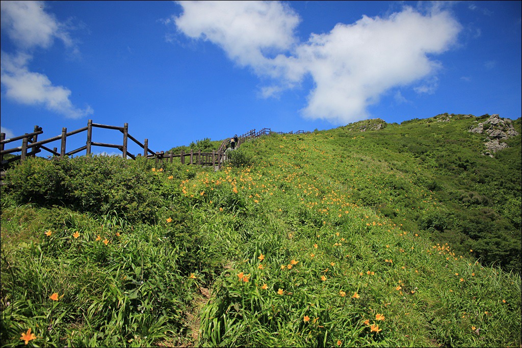 매년 덕유산과 오대산에는 노란 원추리꽃이 그 절정을 이룬다