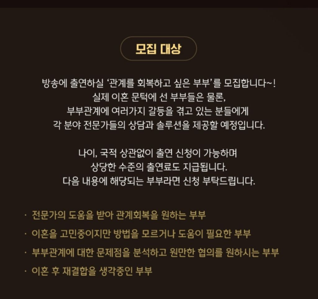 신청 페이지에서 보니 상당한 수준의 출연료를 지급하겠다고 적혀있더오.