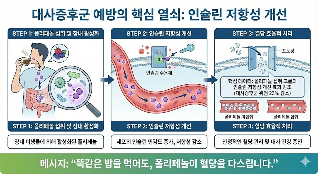 연구팀은 폴리페놀이 단순히 염증을 줄이는 수준을 넘어, 장내 미생물 생태계를 근본적으로 바꿔 인슐린 저항성을 낮춘다고 분석했다.