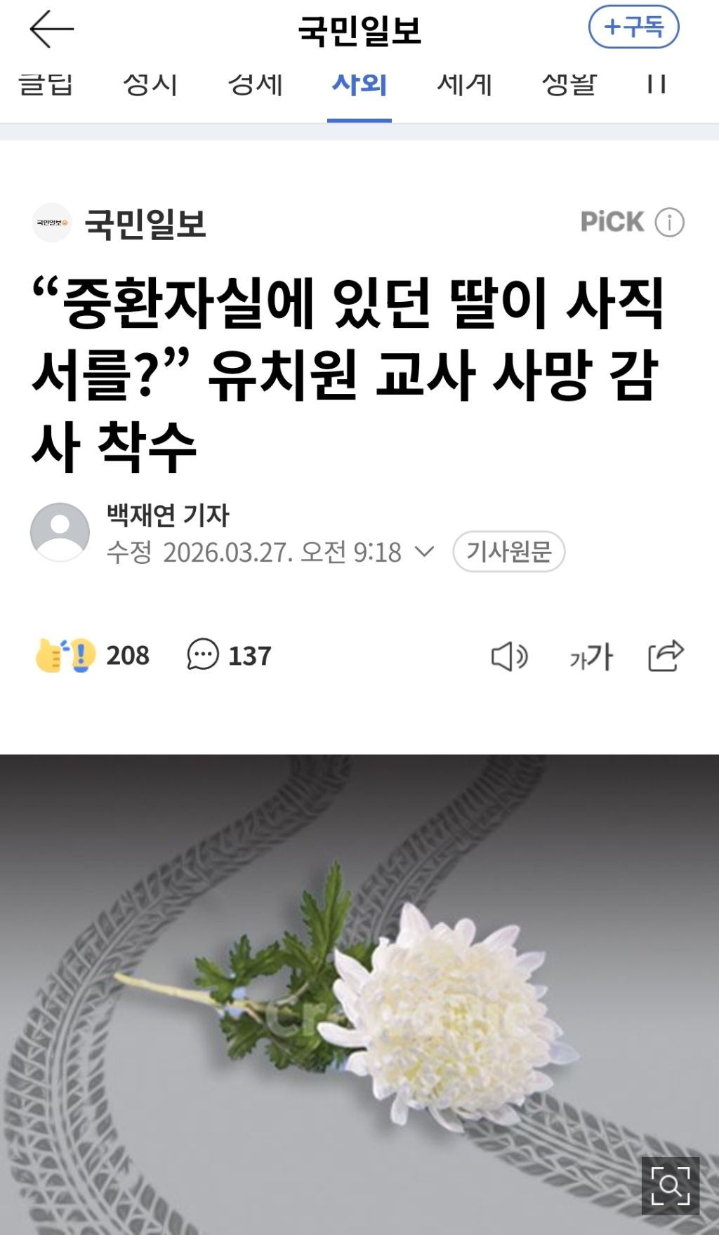자기가 억지로 근무하게 해서 중환자실에 들어간 교사의 사직서 만든 원장이라니