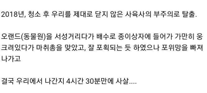 작성자뇌에 힘주고 살자 작성시간 26.04.08 잘못은 인간이 했는데 죄없는 동물 왜 죽이죠.