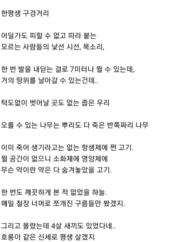 작성자건강하자으라차차 작성시간 26.04.08 ㅠㅠ 애새끼들 교육위한다며 만드는 동물원 다 없어져주길