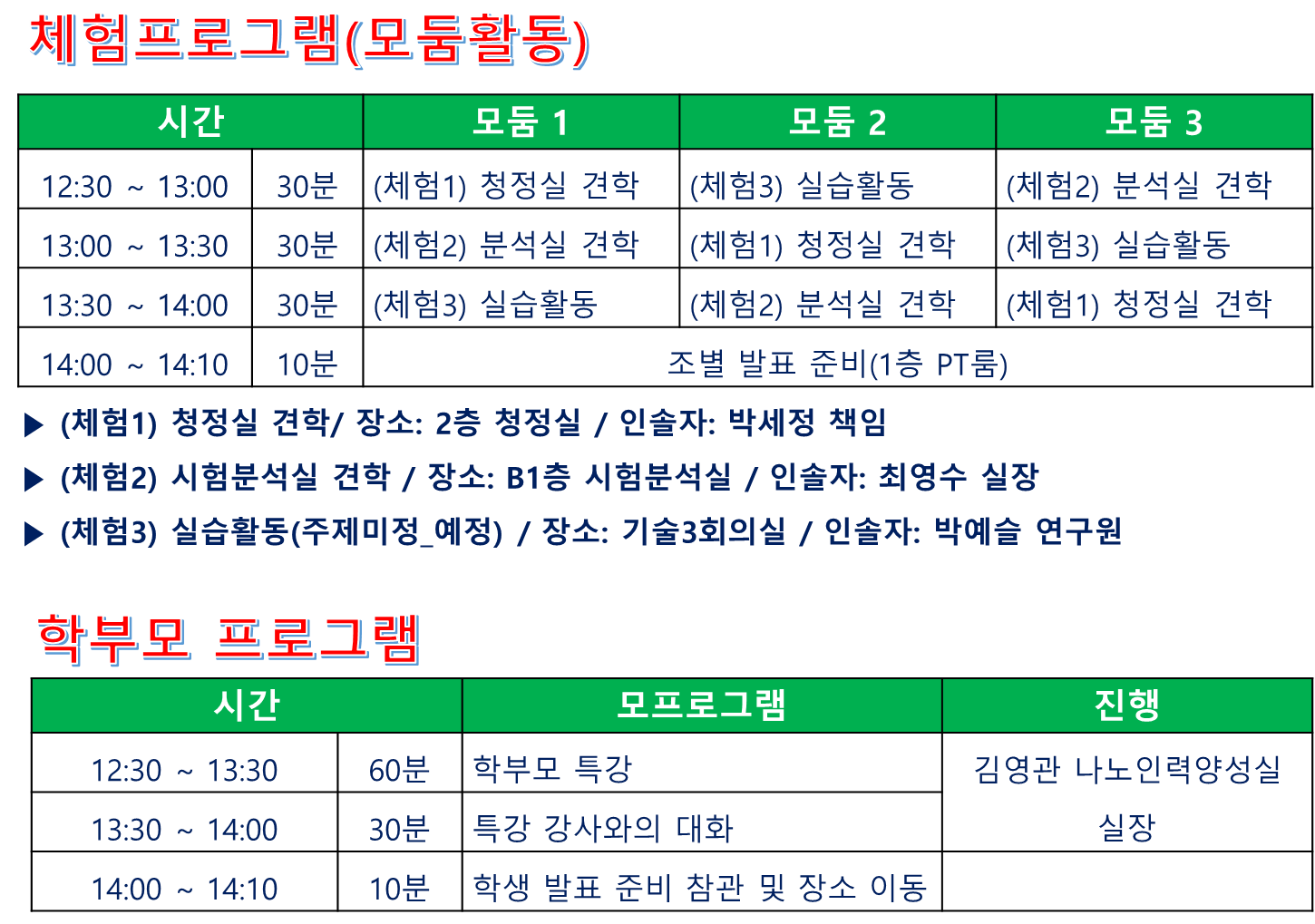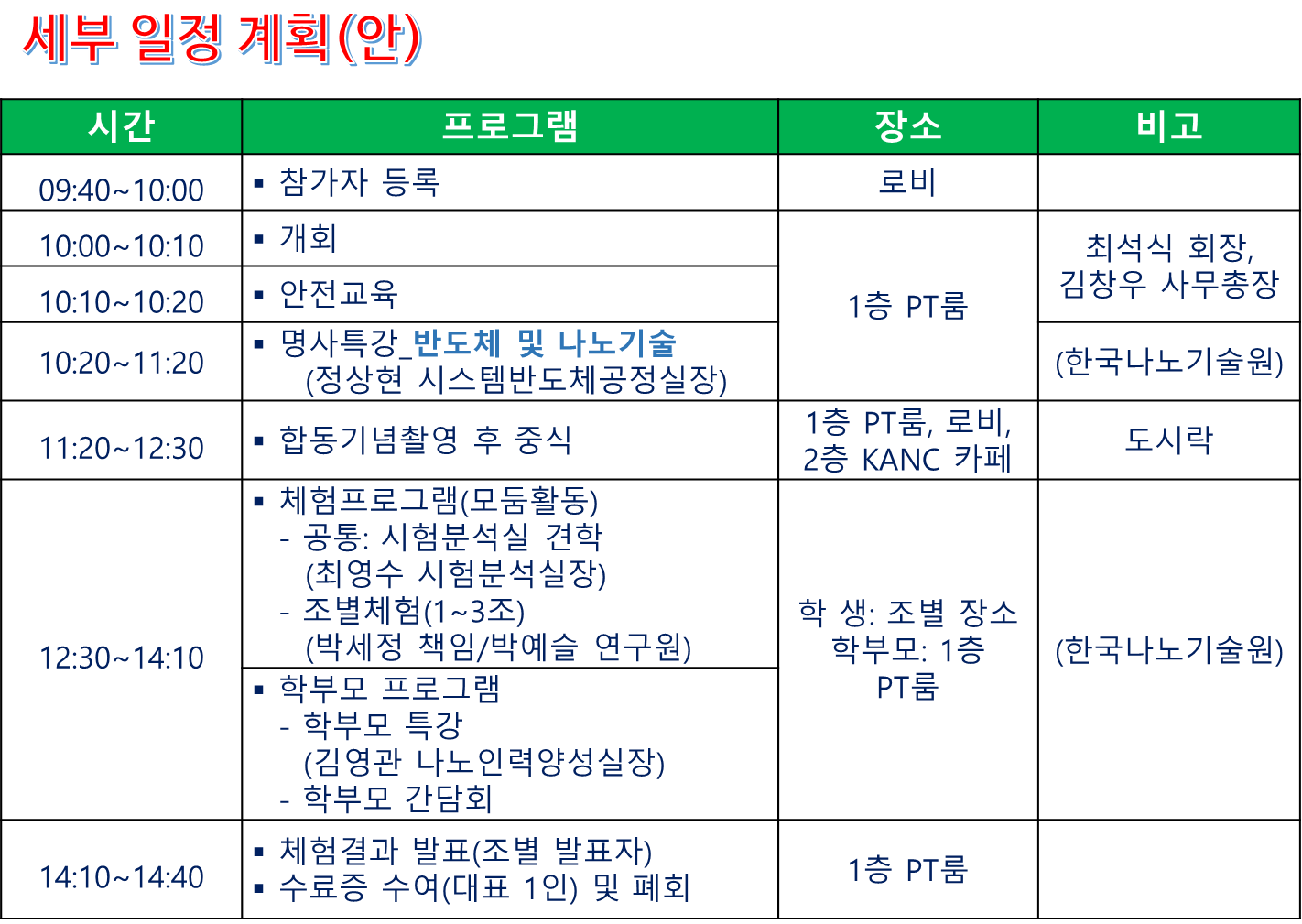 아래와 같이 한국나노기술원 체험탐방 프로그램 개최 안내드립니다.