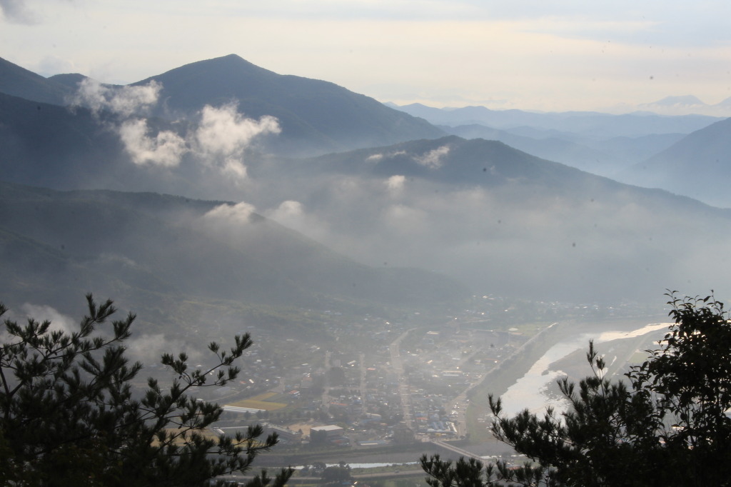 작성자이은화(산아래연꽃/창원) 작성시간 13.10.01 음...구곡산이 높기는 높구나. 구름사이로 보이는 산너울이 한 편의 수묵화 같습니다.
