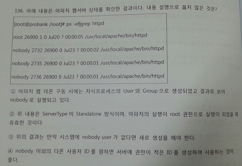 httpd 프로세스를 확인시켜주고 설명이 옳지 않은것을 찾는 문제인데, 지문들이 잘 이해가 안되서