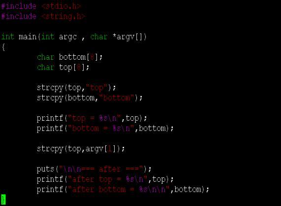 => 소스코드의 strcpy(top,argv[1]) 부분