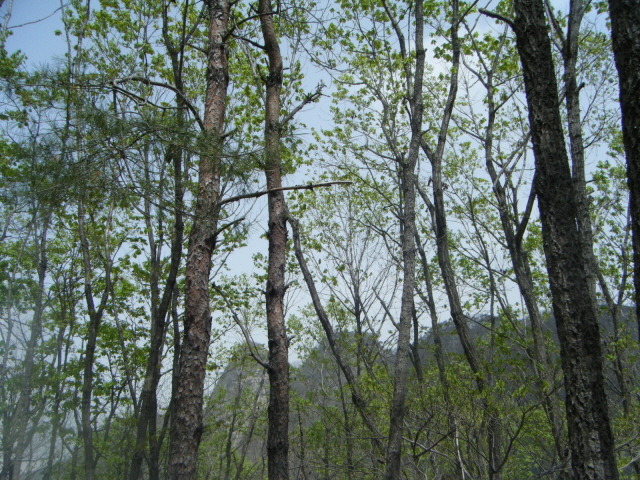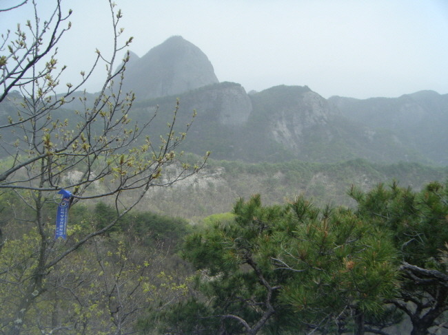 탑사에서 내려와 봉두봉과 전망대로 이어지는 산길로 들어서다. 마이산은 여러번 와봤지만 주변산행은 처음이다. 봉두봉과 광대봉 등산로가 궁금했는데 이번 기회에 길을 새로 익혔다. 황사영향으로 전망대의 조망이 그리 좋지는 않지만 신록의 잎새들로 물들기 시작한 진안고원의 연록색 숲을 걷는 즐거움을 누리다. 종주를 마치고 하산하니 남마이산 입구의 식당가들이 나온다. 남부주차장의 버스 탑승시간이 일러 주변을 둘러본다.