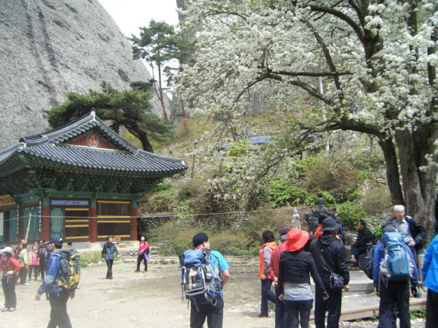 산 주변에는 은수사, 금당사, 탑사 등 유서깊은 절들이 여기저기 있다. 조선을 개국한 이성계의 전설을 간직한 은수사의 청실배나무. 배나무꽃이 화사한 자태를 드러내고 있다. 이성계가 조선을 건국하기 전 이곳을 찾아 기도를 올리고, 그 증표로서 씨앗을 심은 것이 지금에 이르렀다고 전한다. 다음에는 은수사 태극전에 걸려 있다는 단군 영정과 이성계가 선인으로부터 금척을 받는 모습의 금척수수도를 보고 와야 겠다.