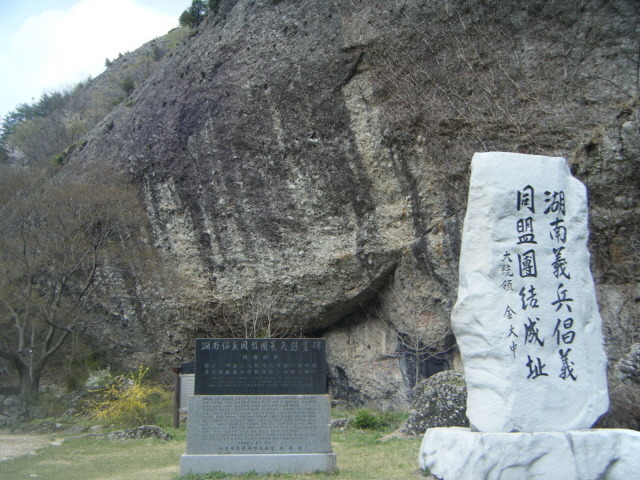 호남의병 창의동맹단 결성지(湖南義兵倡義 同盟團結成址)란 비석도 보인다. 1907년 항일 의병장 이석용이 호남 각지의 의병들을 규합하여 마이산 남쪽 용바위 위에 제단을 쌓고 500명의 의병들과 함께 천재를 지낸 곳으로 호남에서 최초로 국권수호를 위해서 댠체를 결성하여 조직적인 항일운동을 시작한 곳이다.