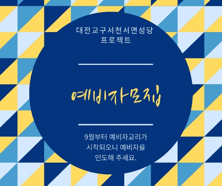 예비자 모집 안내 작성자장정태플로라|작성시간20.07.19|조회수166 목록 댓글 0 글자크기 작게가 글자크기 크게가 지난 주에 새신자 3분의 탄생을축하하며, 9월부터 새로 시작하는예비자 교리에 하느님의 자녀 될분들을 찾습니다.많은 관심 부탁드립니다. 다음검색 현재 게시글 추가 기능 열기 북마크 공유하기 신고 센터로 신고 댓글 댓글 0 댓글쓰기 답글쓰기 댓글 리스트