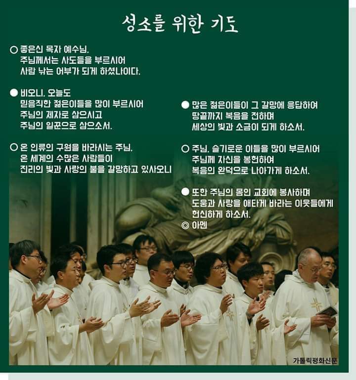 성소주일을 맞아 "성소를 위한 기도" 작성자장정태플로라|작성시간20.05.03|조회수745 목록 댓글 0 글자크기 작게가 글자크기 크게가 성소 주일을 맞아한상록 마태오 학사님을 위해 기도 드리며주님의 부르심을 기다리는 또 다른 이들을위해서도 기도 드립니다. 다음검색 현재 게시글 추가 기능 열기 북마크 공유하기 신고 센터로 신고 댓글 댓글 0 댓글쓰기 답글쓰기 댓글 리스트