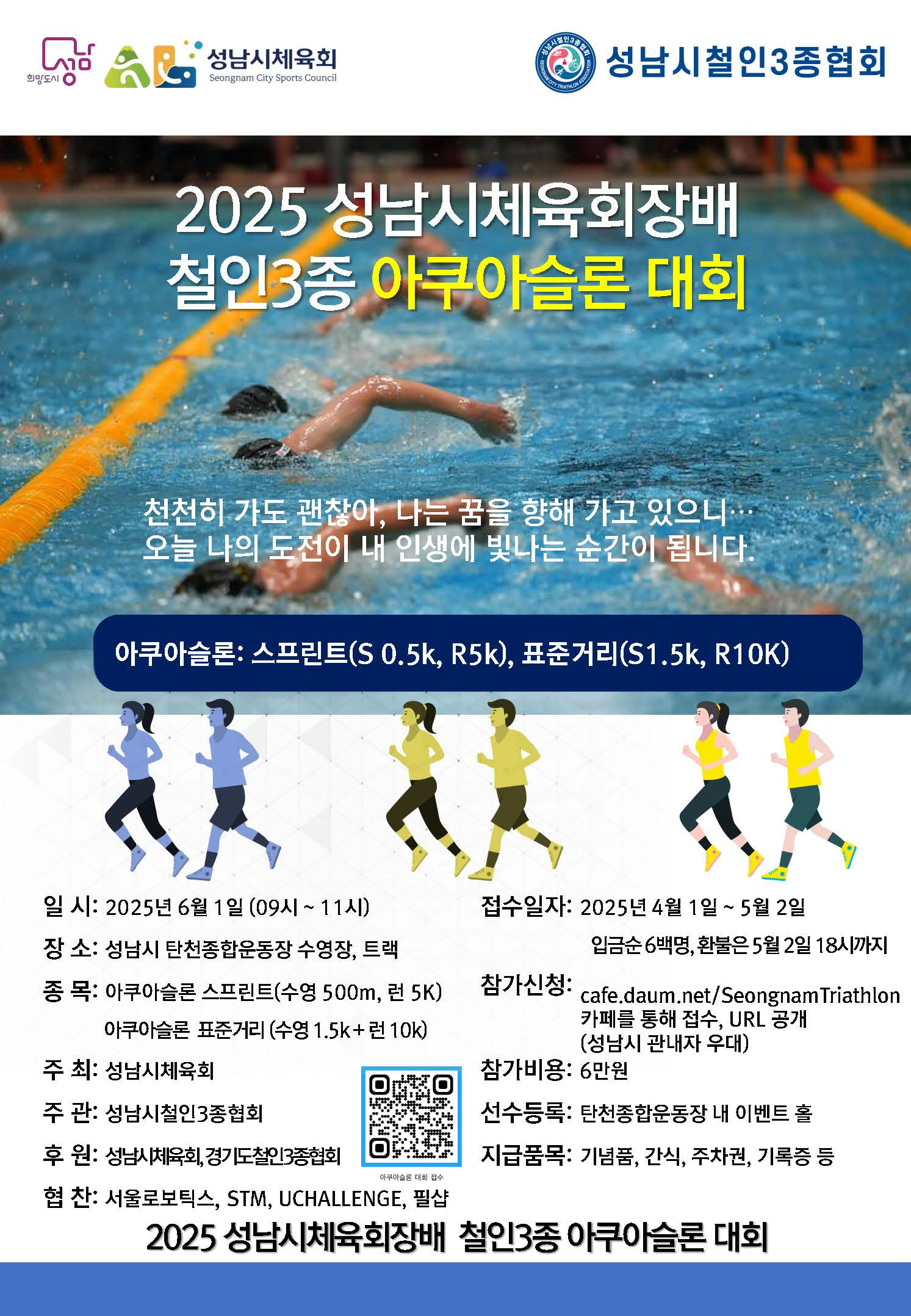 [대회공지]2025 성남시체육회장배 내생애 아쿠아슬론 대회 공지 작성자Phil|작성시간25.03.25|조회수1,603 목록 댓글 0 글자크기 작게가 글자크기 크게가 다음검색 현재 게시글 추가 기능 열기 북마크 공유하기 신고 센터로 신고 댓글 댓글 0 댓글쓰기 답글쓰기 댓글 리스트