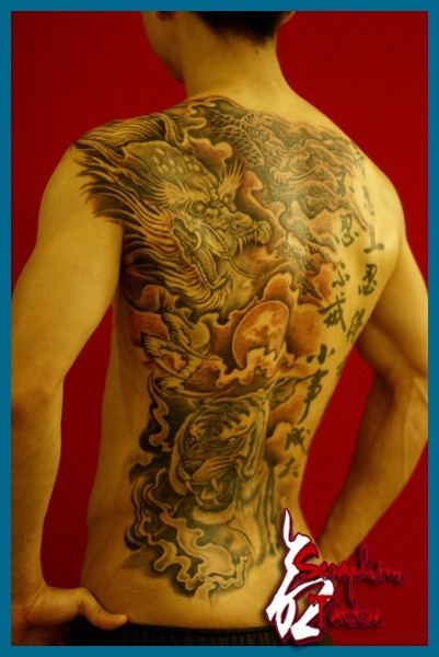 바로 다음날 용타투 와 호랑이타투 색을 넣었는데