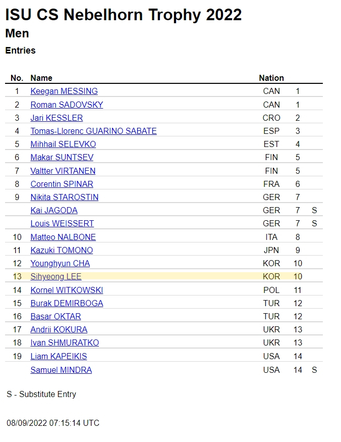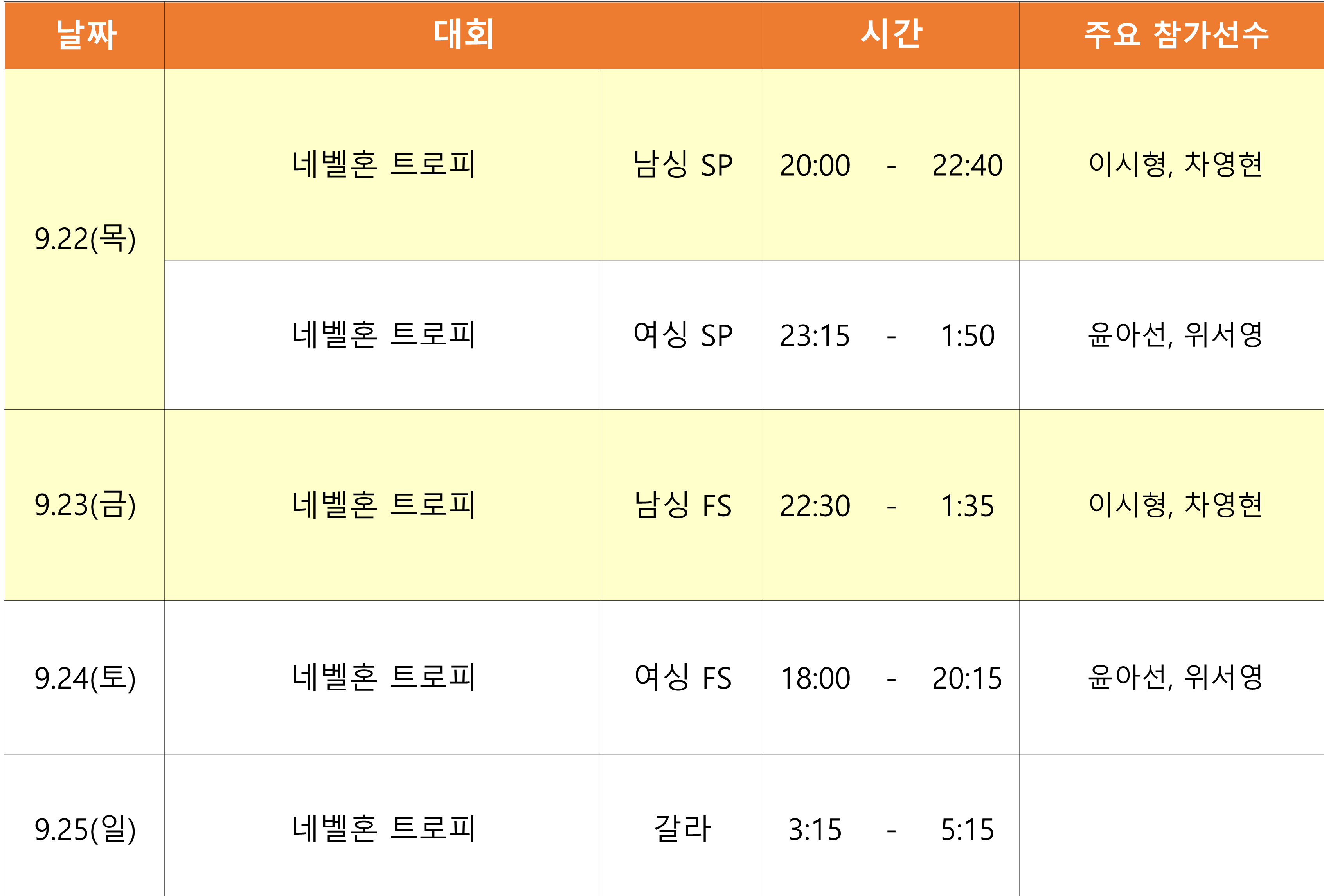 [ISU]2022 네벨혼 트로피 (2022.09.21~2022.09.24) 작성자잔디|작성시간22.09.16|조회수110 목록 댓글 1 글자크기 작게가 글자크기 크게가 시형선수는 시즌 첫 국제대회로 다음주 네벨혼 트로피에 출전합니다 ✨한국시간의 자세한 일정은 아래 표를 참고해주세요! 독일과의 시차는 7시간입니다. 다음검색 현재 게시글 추가 기능 열기 북마크 공유하기 신고 센터로 신고 댓글 댓글 1 댓글쓰기 답글쓰기 댓글 리스트 작성자시형.예은맘. | 작성시간 22.09.16 화이팅 화이팅 화이팅🇰🇷🇰🇷🇰🇷⛸️⛸️⛸️💚💙💜 댓글 전체보기