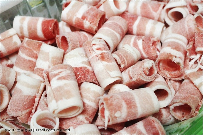 대패삼겹살 400g-500g, 파채 두줌, 맛타리 버섯 반팩, 양파 반개