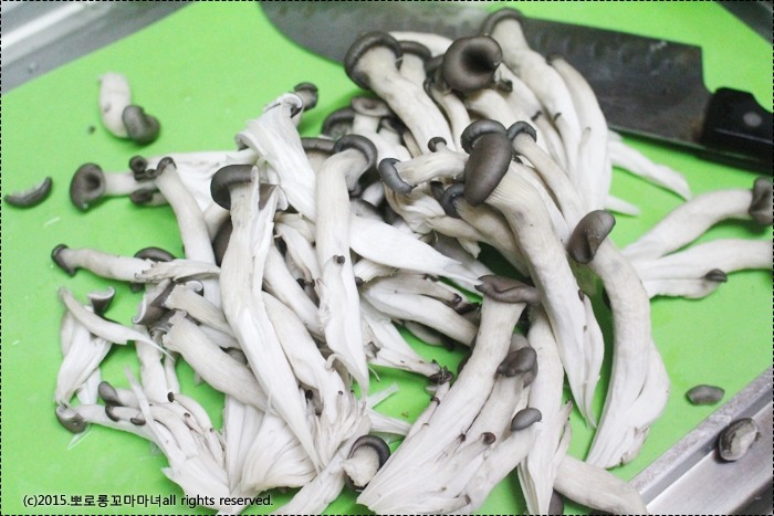 버섯은 그냥 먹기 좋게 맛타리버섯인지라 손으로 쭉쭉 찢어놓고~~