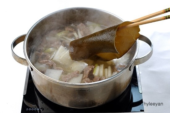 재료(2~3인분) : 쇠고기(양지)200g, 무1/3개(500g), 대파1/2대, 다시마1장(사방5cm크기),