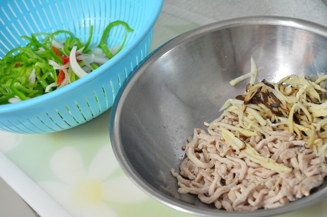 4. 이렇게 준비 끝! 죽순과 표고, 돼지고기채는 이미 익었으니 따로 분류해주세요!