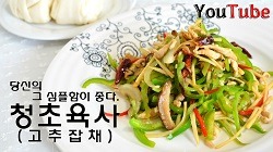 청초육사는 제가 자주 해 먹는 요리 중 하나랍니다. 일단 재료의 전처리 과정이 어렵지 않은데다가(그냥 채썰면 그만~!) 재료비가 적게 들면서도.. 만족도가 아주 높기 때문이죠. 특히나 밖에서 사 먹는 청초육사 가격을 고려하자면...