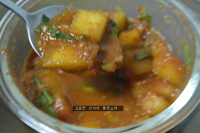 ▶ 재료 : 수박 껍질 100g, 고춧가루 3숟가락, 멸치 액젓 2숟가락, 마늘, 소금 약간