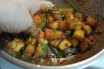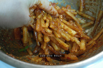 ㉡ 30분 후 흐르는 물에 씻어 양념을 넣어준다.
