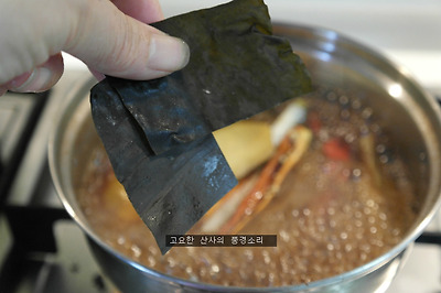 무 2조각, 붉은 고추 1개, 대파 1대를 넣어 삶아 주었음