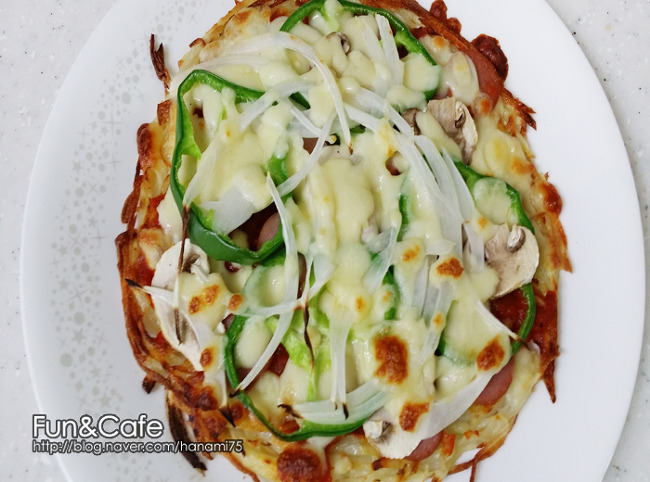 오늘 간식으로는 감자로 만든 감자채피자를 만들어 봤네여~