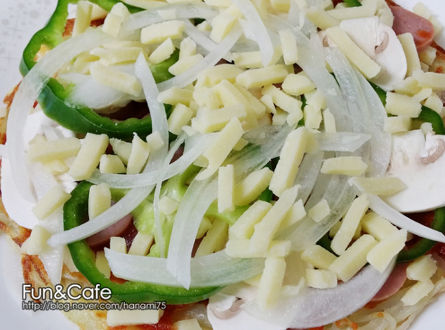 나름 ?피자느낌 내려고 초록색 피망을 준비했는데 ?알록달록 파프리카도 좋을것 같아여~