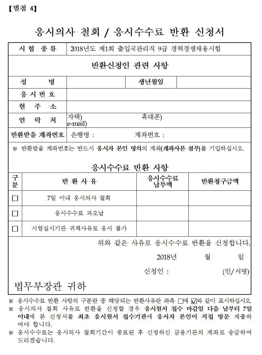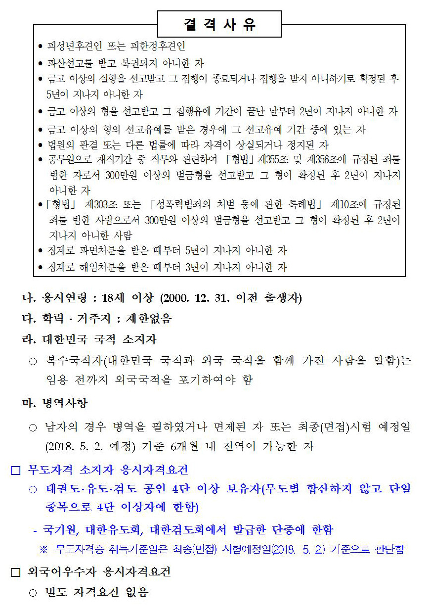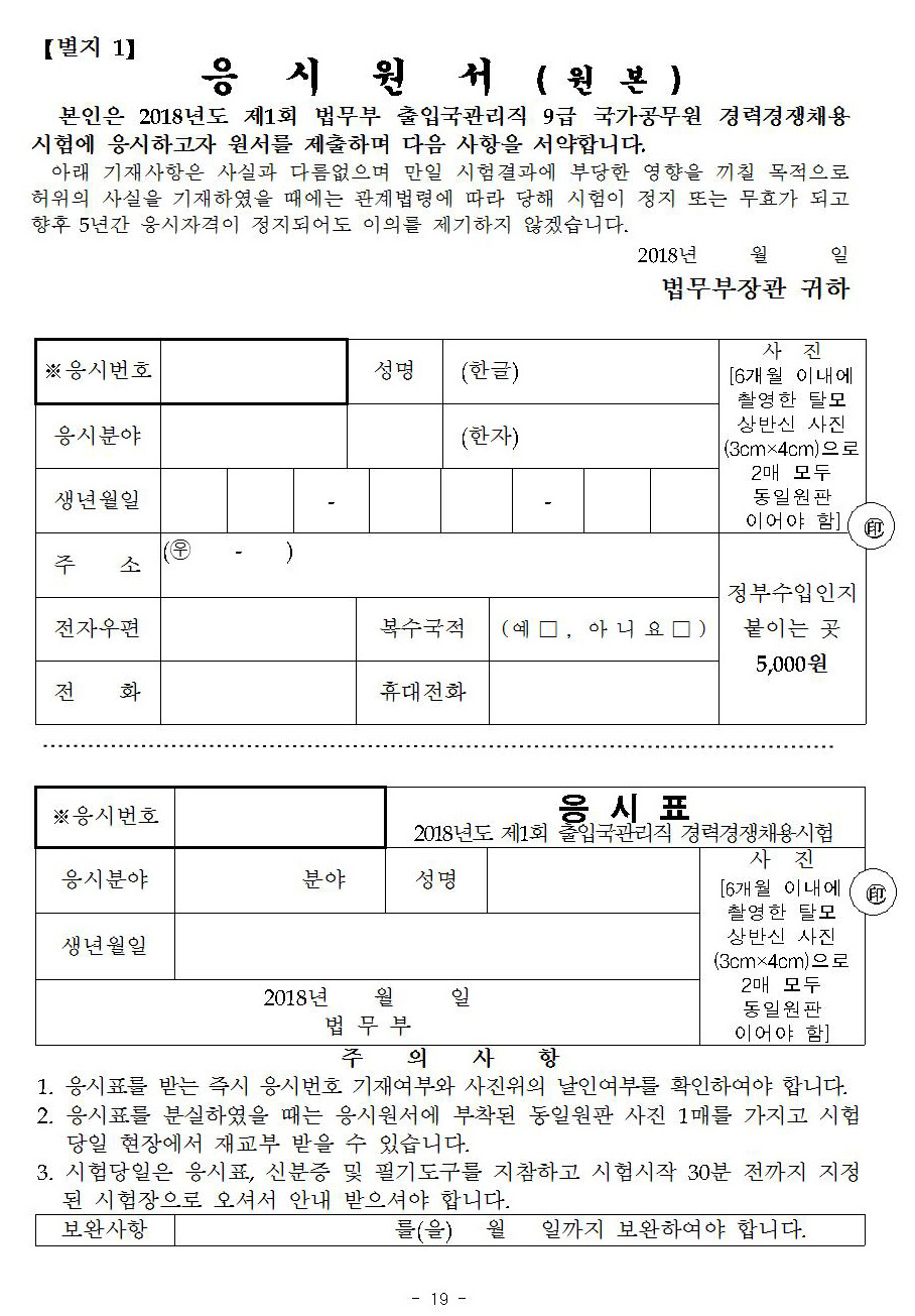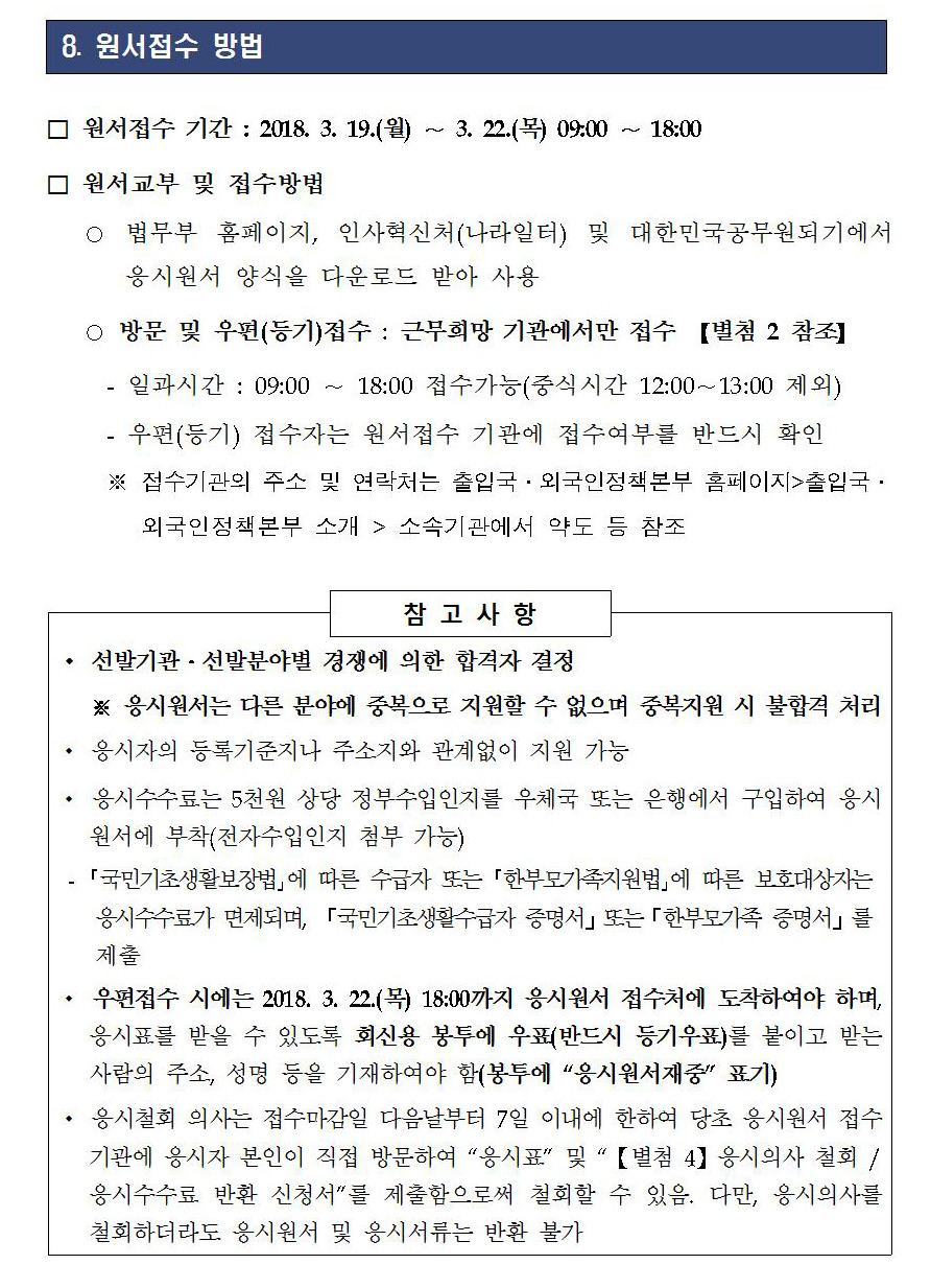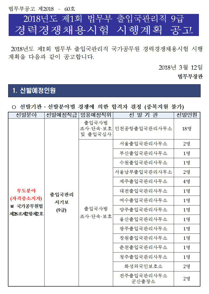 [스크랩] 2018년도 제1회 법무부 출입국관리직 9급 경력경쟁채용시험 시행계획 공고 작성자석길영|작성시간18.03.14|조회수285 목록 댓글 0 글자크기 작게가 글자크기 크게가 파일 다운로드 하기는 아래 2018년도_제1회_출입국관리직_9급_경력경쟁채용시험_공고문.hwp 2018년도_제1회_출입국관리직_9급_경력경쟁채용시험_공고문.pdf 첨부파일첨부된 파일이 22개 있습니다. jpg 파일 공고문001.jpg 다운로드 jpg 파일 공고문002.jpg 다운로드 jpg 파일 공고문003.jpg 다운로드 jpg 파일 공고문004.jpg 다운로드 jpg 파일 공고문005.jpg 다운로드 jpg 파일 공고문006.jpg 다운로드 jpg 파일 공고문007.jpg 다운로드 jpg 파일 공고문008.jpg 다운로드 jpg 파일 공고문009.jpg 다운로드 jpg 파일 공고문010.jpg 다운로드 jpg 파일 공고문011.jpg 다운로드 jpg 파일 공고문012.jpg 다운로드 jpg 파일 공고문013.jpg 다운로드 jpg 파일 공고문014.jpg 다운로드 jpg 파일 공고문015.jpg 다운로드 jpg 파일 공고문016.jpg 다운로드 jpg 파일 공고문017.jpg 다운로드 jpg 파일 공고문018.jpg 다운로드 jpg 파일 공고문019.jpg 다운로드 jpg 파일 공고문020.jpg 다운로드 hwp 파일 2018년도_제1회_출입국관리직_9급_경력경쟁채용시험_공고문.hwp 다운로드 pdf 파일 2018년도_제1회_출입국관리직_9급_경력경쟁채용시험_공고문.pdf 다운로드 다음검색 스크랩 원문 : 유도 조은 사람들 현재 게시글 추가 기능 열기 북마크 공유하기 신고 센터로 신고 댓글 댓글 0 댓글쓰기 답글쓰기 댓글 리스트