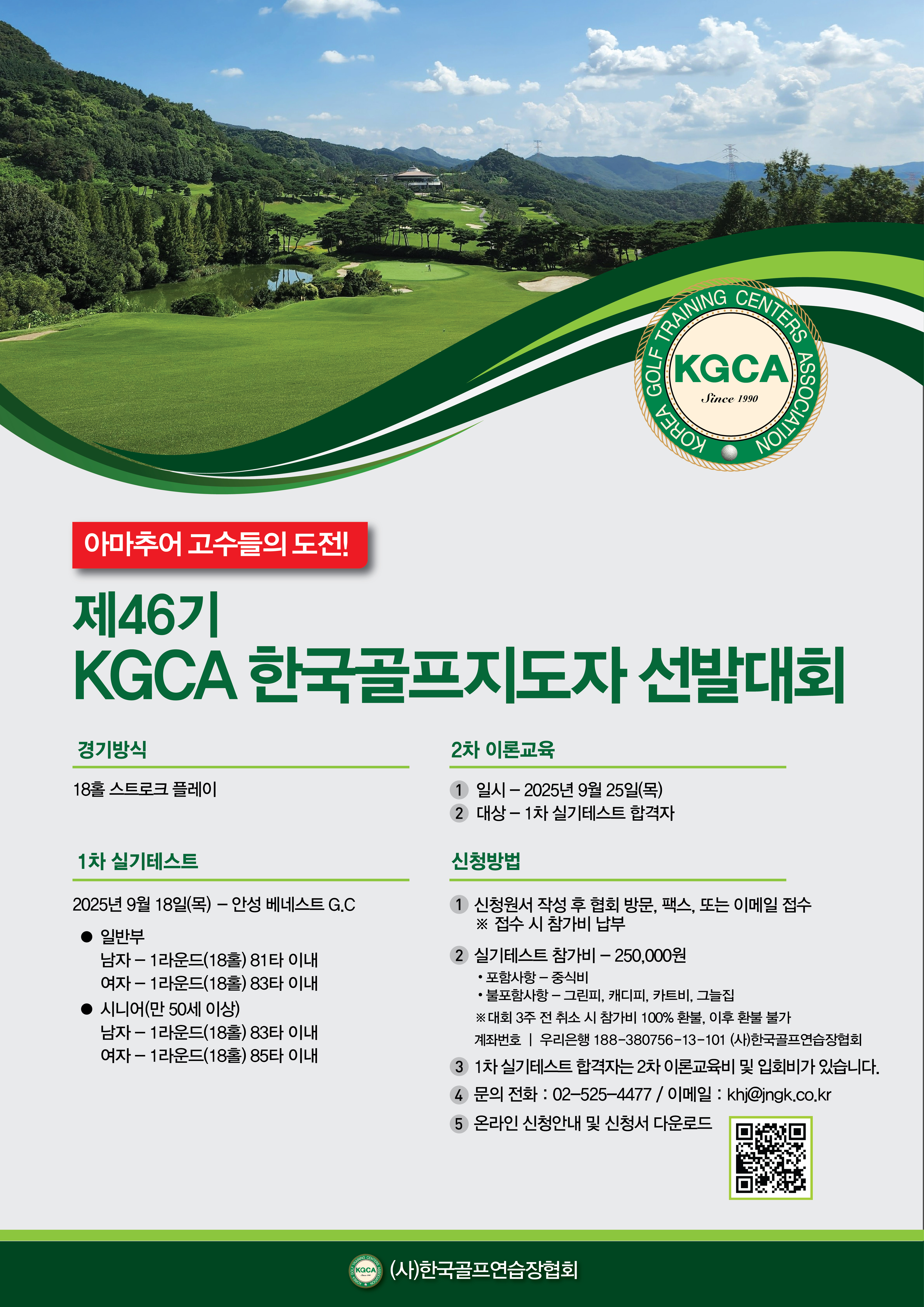 한국골프지도자 선발대회가 9월 18일 (목) 안성베네스트 GC에서 개최됩니다.
