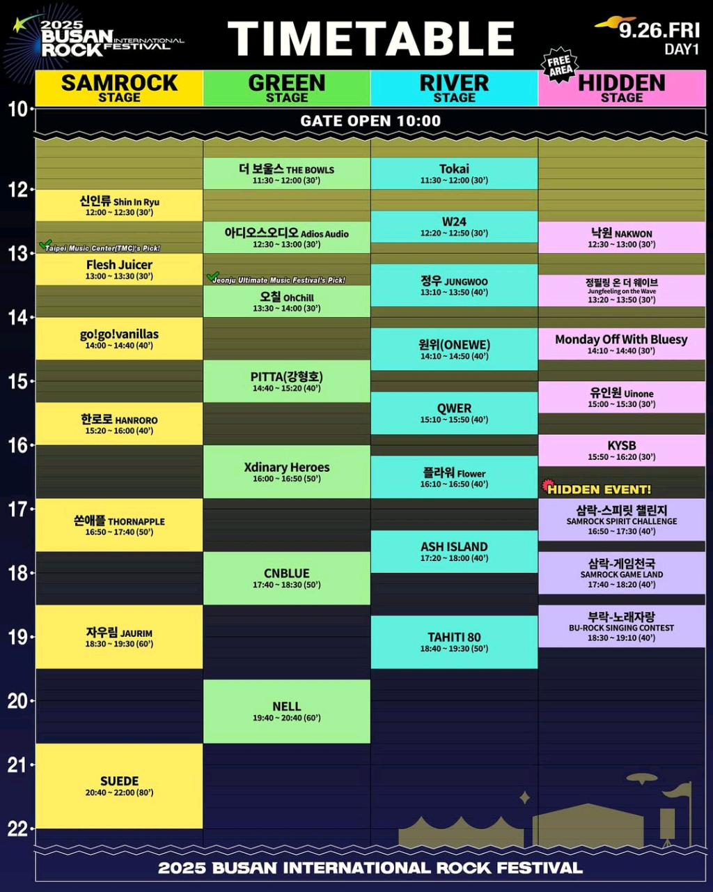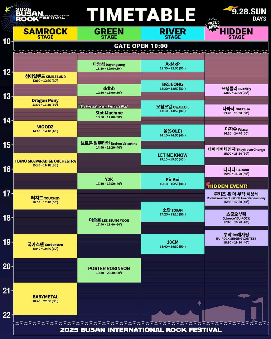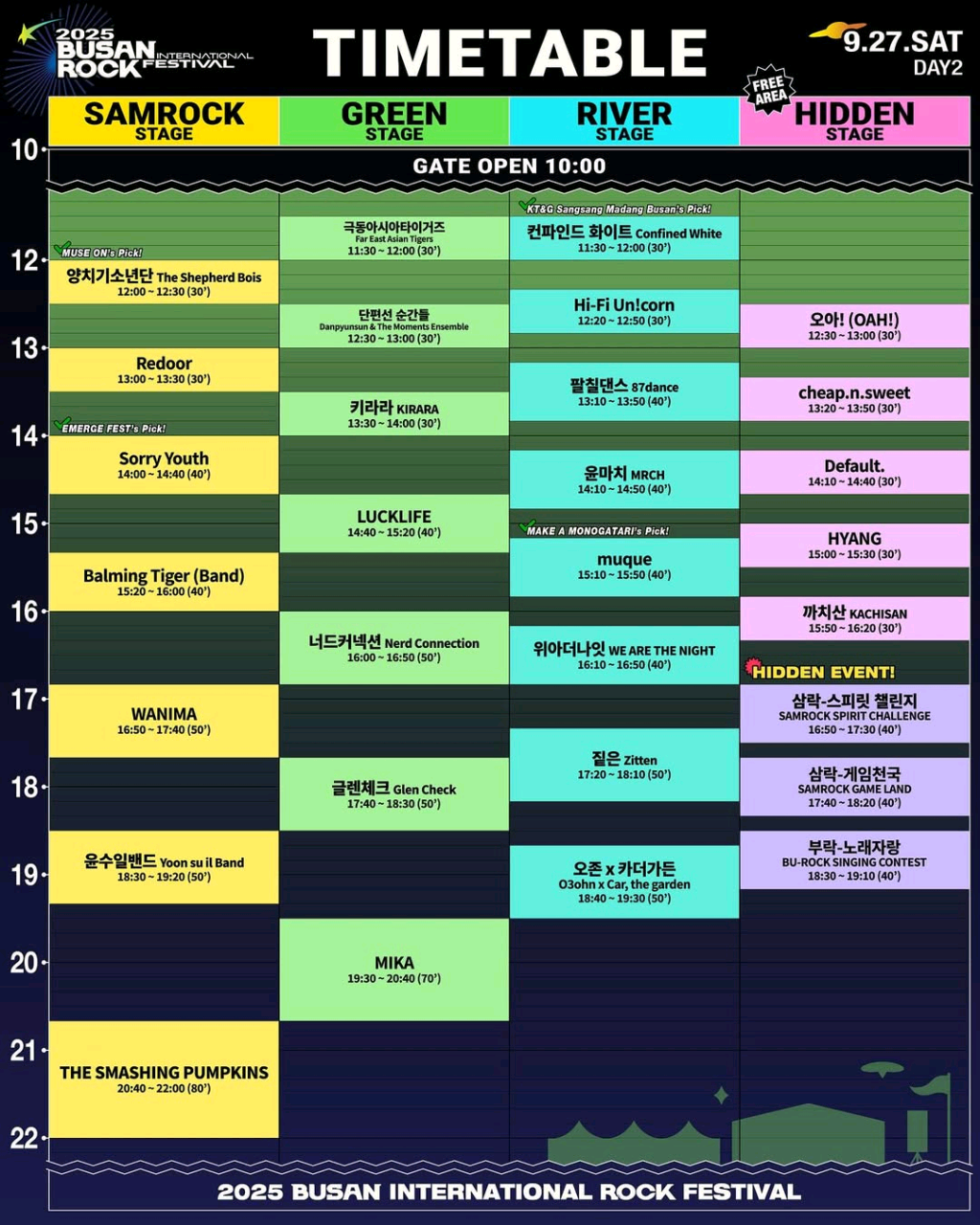 [공연]2025.09.28 (SUN) PM 2:40 삼락생태공원 Green Stage [2025 부산국제록페스티벌] *타임테이블 공개