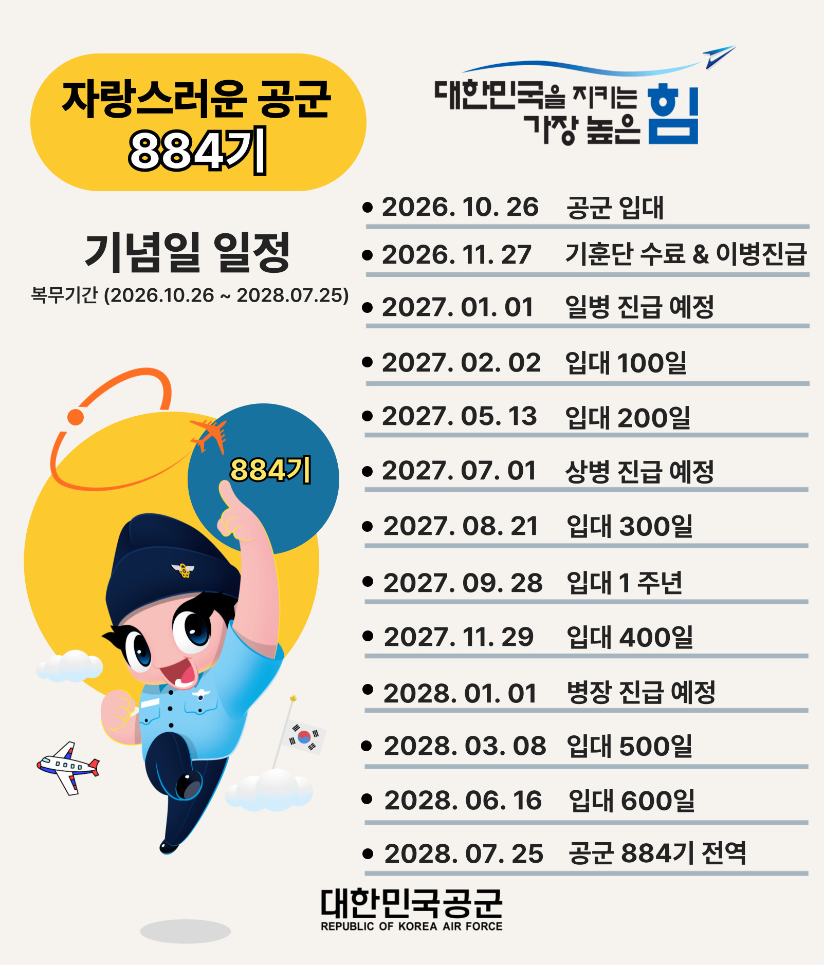 884기 진급일정 및 기념일 작성자850기_비가없는하늘(15특비/군경)|작성시간26.03.30|조회수22 목록 댓글 1 글자크기 작게가 글자크기 크게가 거꾸로 매달아도 돌아가는 국방부 시계입니다.전역까지 무사무탈, 아말다말 하시길 바라요~~!!따뜻한 가족의 품으로 안전하게 연착륙하시길 소원합니다. 다음검색 현재 게시글 추가 기능 열기 북마크 공유하기 신고 센터로 신고 댓글 댓글 1 댓글쓰기 답글쓰기 댓글 리스트 작성자798기 동짱부(18비군사경찰) | 작성시간 26.03.31 이미지 확대 댓글 전체보기