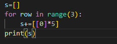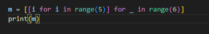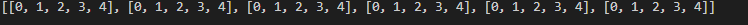 6개의 행을 만들고, 내부 리스트는 5까지 순차적인 값 채움.