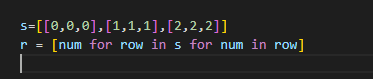 리스트의 각 행에있는 요소들이 하나의 리스트로 병합됨.