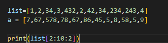 리스트[start:stop:step] step =2 이면 2씩 증가하면서 요소들 추출.