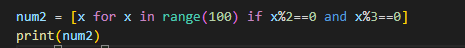 0~99까지 정수중 2의 배수이면서 3의 배수인 수모아 리스트 만들기