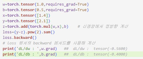 ---> 파이토치는 계산 그래프를 구성하고 이를 사용하여 그레이디언트 계산함.