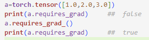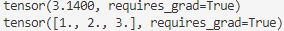 1 2 3 4 | a=torch.tensor(3.14,requires_grad=True) print(a) b=torch.tensor([1.0,2.0,3.0],requires_grad=True) print(b) | cs |