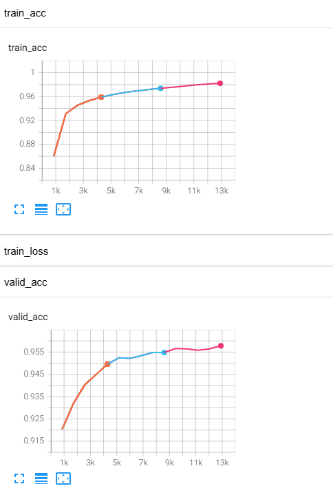 1 2 3 4 5 6 7 8 9 10 11 12 13 | from pytorch_lightning.callbacks import ModelCheckpoint mnistclassifier = MultiLayerPerceptron() callbacks = [ModelCheckpoint(save_top_k=1, mode='max', monitor="valid_acc")] # 가장 높은 성능의 모델 저장하기 if torch.cuda.is_available(): # GPU를 가지고 있다면 trainer = pl.Trainer(max_epochs=10, callbacks=callbacks, gpus=1) else: trainer = pl.Trainer(max_epochs=10, callbacks=callbacks) trainer.fit(model=mnistclassifier, datamodule=mnist_dm) | cs |