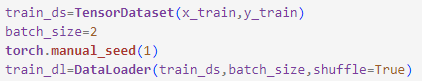 ⑤ 훈련 데이터의 배치 크기가 2인 데이터 로더 생성