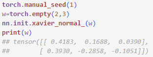 - 신경망 모델은 역전파하는 동안 대칭성을 깨기 위해 파라미터를 랜덤한 가중치로 초기화 해야함. => 그렇지 않으면 다층 신경망이 로지스틱 회귀같은 단일층 신경망보다 더 유용하지 않기 때문임. => 파이토치는 다양한 확률 분포를 기반으로 난수를 생성할 수 있음!