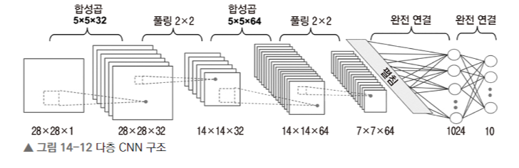 --> 합성곱과 풀링 연산이 끝난 후 특성맵을 일렬로 펴서 완전 연결 층에 전달(1차원 벡터로 변환)