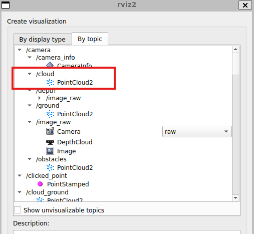 camera/cloud의 PointCloud2 추가 (x, z, y depth 보는 방법)